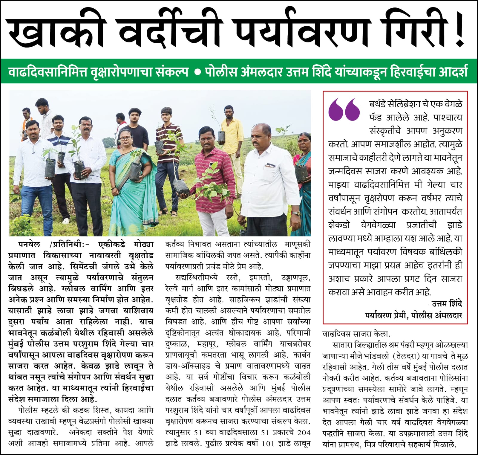 निसर्ग वाचवण्याची जबाबदारी कोण्या एका संस्थेची अथवा फक्त सरकारची नाही किंवा फक्त पर्यावरण प्रेमींच काम नाही
